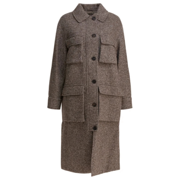 Le prix initial était : 659.84€.330.00€Le prix actuel est : 330.00€.« Brunello Cucinelli » manteau femme marron en laine vierge et soie mélangées coupe regular