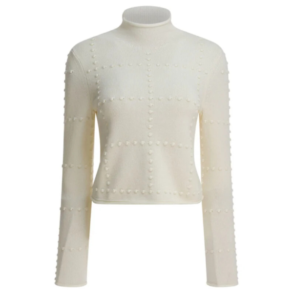 Le prix initial était : 1,188.52€.790.00€Le prix actuel est : 790.00€.« Elie Saab » pull femme beige en laine avec empiècements en dentelle coupe regular