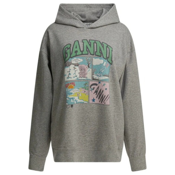 « Ganni » sweat oversize femme gris coton biologique manches longues