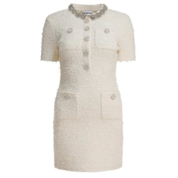 « Self-Portrait » Robe blanche en maille stretch pour femme