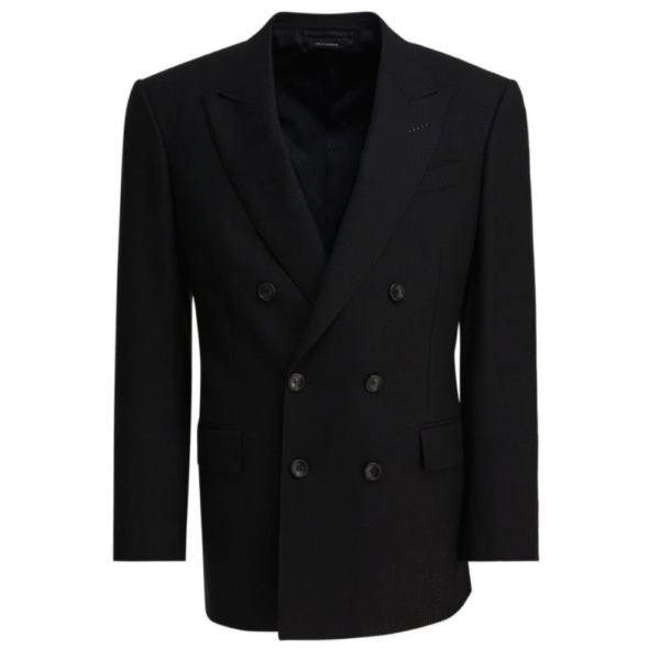 Le prix initial était : 563.93€.490.00€Le prix actuel est : 490.00€.« Thom Browne » Veste noire en laine et mohair pour homme