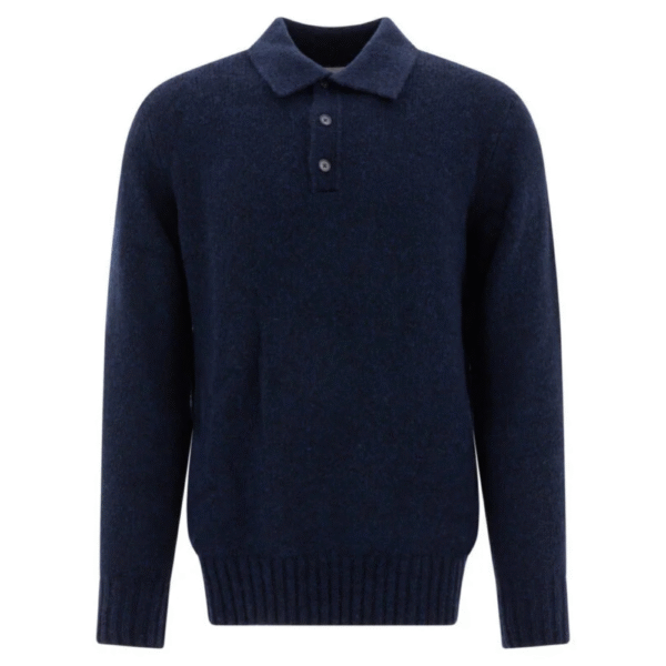 « Golden Goose » polo homme bleu en laine vierge mérinos