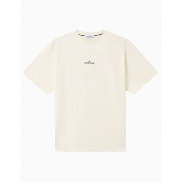 « Stone Island » T-shirt imprimé en coton blanc cassé homme Slim Fit