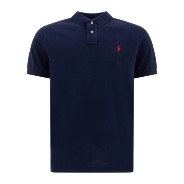 « Rakki » Polo à manches courtes rayées bleu en coton homme