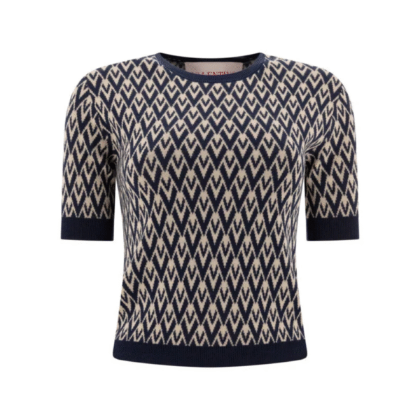 « Valentino » t-shirt femme bleu et beige en laine vierge
