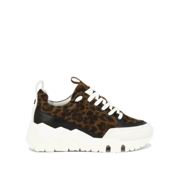 « Pierre Hardy » sneakers femme marron cuir suède imprimé léopard