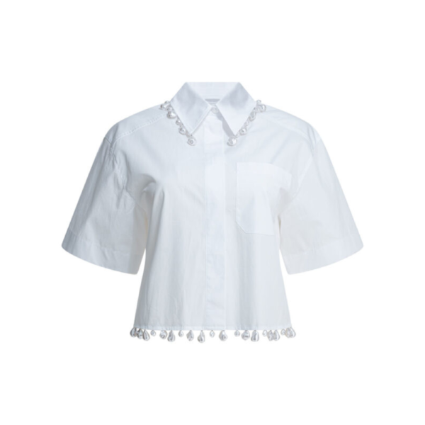 Le Détail Signature : Le petit cristal « Swarovski » cousu discrètement sur chaque vêtement, symbole de l’appartenance à l’élite créative de la marque.