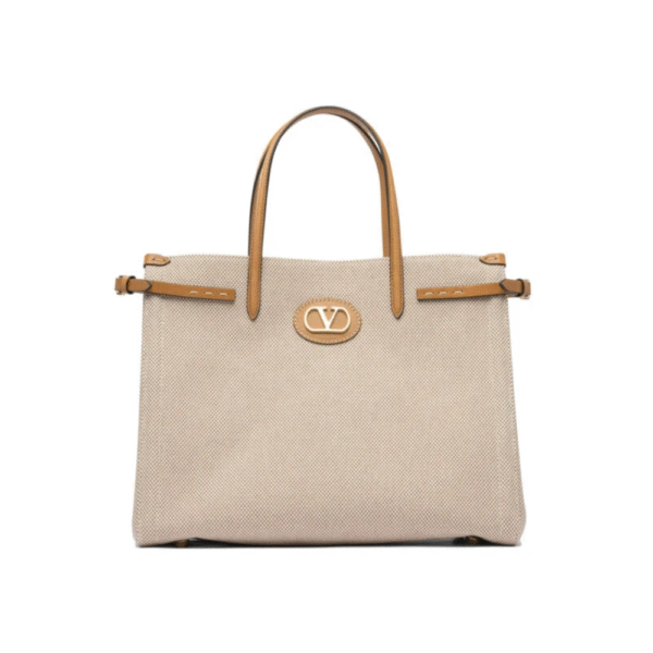 « Valentino Garavani » sac cabas femme beige en tissu et cuir