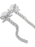 Ces boucles d’oreilles Self-Portrait se distinguent par leur design élégant et leur silhouette pendante raffinée. Conçues avec une structure en métal argenté, elles présentent un motif nœud orné de cristaux qui apporte éclat et sophistication. Les éléments pendants mobiles prolongent la ligne du bijou et créent un mouvement délicat. Leur finition lisse et réfléchissante souligne la qualité des détails, tandis que la fermeture à tige assure un maintien stable et confortable.