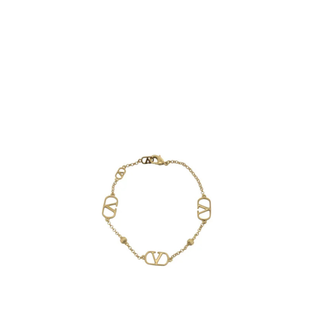 Ce bracelet Valentino Garavani VLogo Signature pour femme incarne une élégance raffinée et contemporaine, signature de la maison italienne. Confectionné en métal plaqué or, il se compose d’une chaîne fine ponctuée de stations VLogo régulièrement espacées, soulignant une silhouette géométrique et équilibrée. Les surfaces lisses et les détails gravés apportent une finition soignée et lumineuse. Son fermoir mousqueton ajustable permet d’adapter facilement la longueur pour un porté confortable et personnalisé, idéal pour la saison printemps-été.
