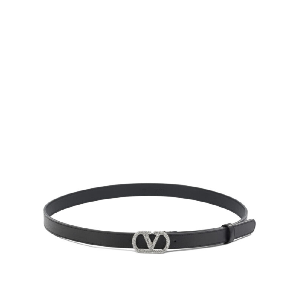 cette ceinture de la maison valentino garavani pour femme est un accessoire de maroquinerie au design luxueux et étincelant conçu pour la saison printemps-été 2026. fabriquée en italie, elle est intégralement confectionnée dans un cuir de veau brillant (100 %) de première qualité, offrant une structure à la fois souple et robuste ainsi qu’une finition miroir d’une grande élégance. sa silhouette se distingue par un profil droit et une ligne fine de 20 mm, alliant le raffinement de la haute couture italienne à une esthétique glamour contemporaine. le design au coloris noir profond présente une construction soignée avec l’emblématique boucle vlogo signature recouverte de cristaux swarovski® étincelants sur une base en palladium. la structure inclut une doublure intérieure également en cuir de veau et une fermeture à boucle ajustable intégrée de manière affleurante pour garantir une parfaite uniformité visuelle. ce modèle allie parfaitement la noblesse des cuirs de luxe à l’éclat des cristaux, constituant un accessoire de prestige pour votre vestiaire de saison.
