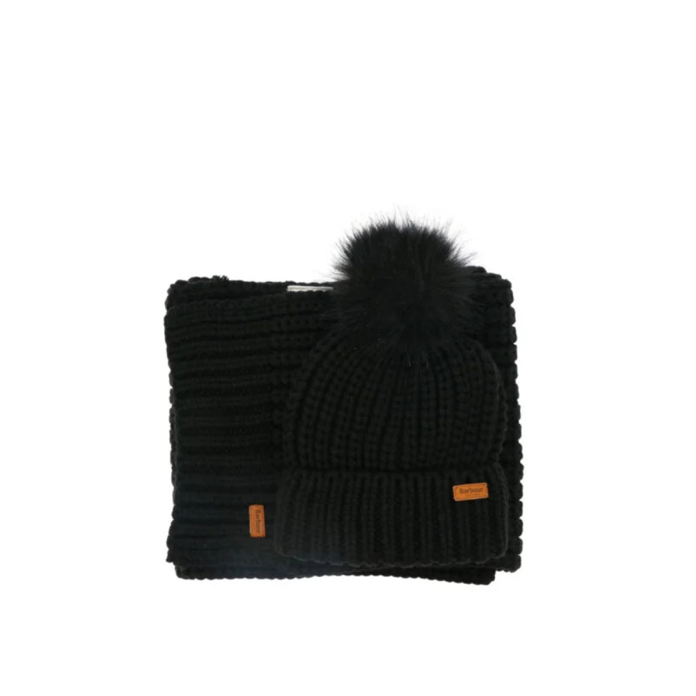« Barbour » ensemble femme noir « Saltburn » bonnet et écharpe