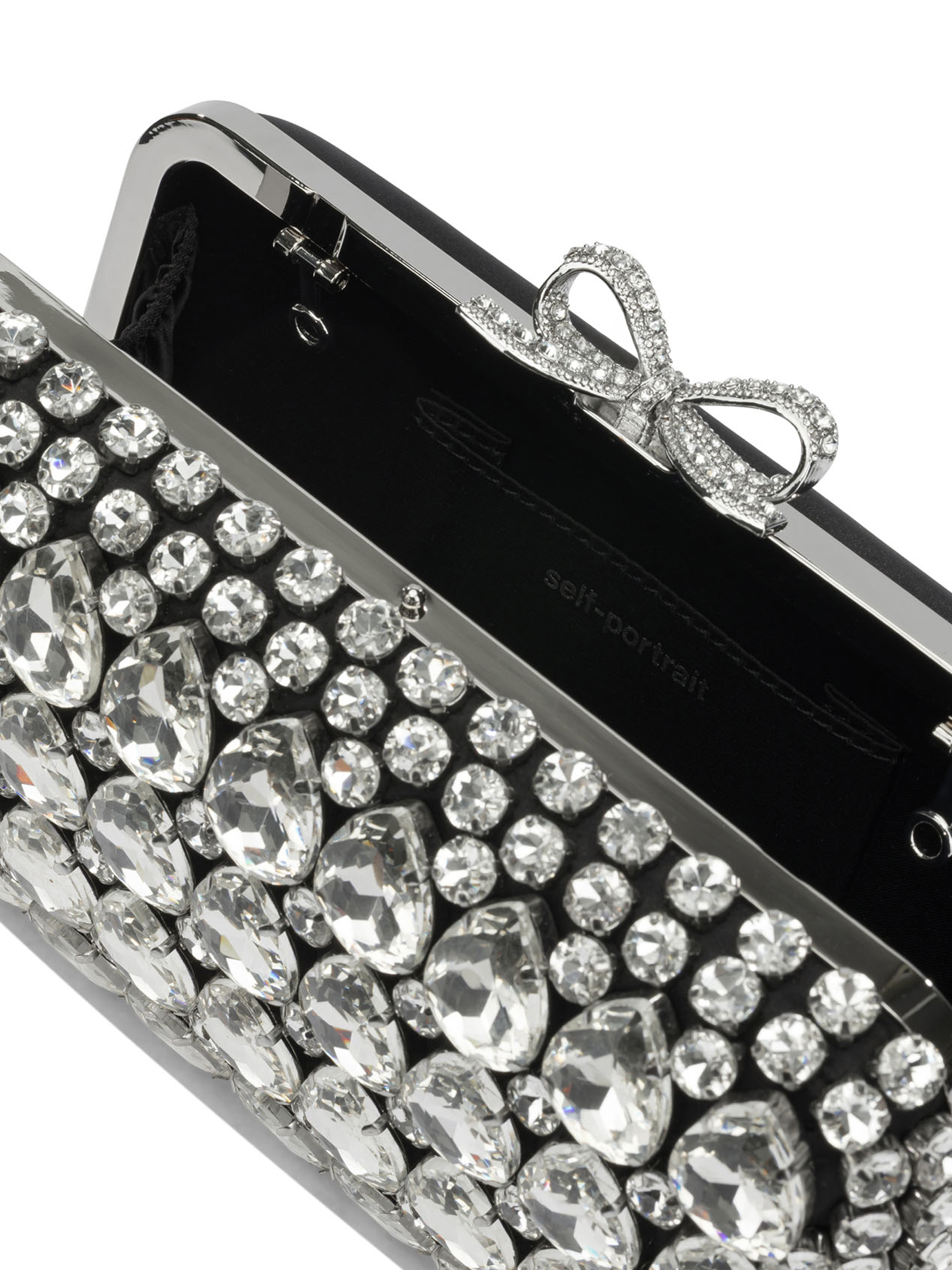 « Self-portrait » pochette femme noire ss26-305a en satin et strass à nœud
