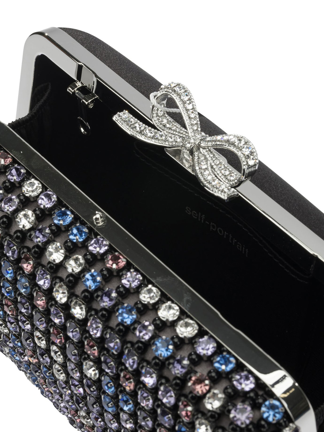 Cette pochette Self-Portrait pour femme illumine les silhouettes de soirée avec son design raffiné. Confectionnée en maille ornée de cristaux sur une base souple, elle adopte une silhouette rectangulaire structurée par des renforts discrets. Son rabat est sublimé par un nœud en cristaux argentés et une fermeture à boucle dissimulée pour une finition élégante. La chaîne amovible permet un porté épaule ou à la main, idéale pour la saison printemps-été 2026.