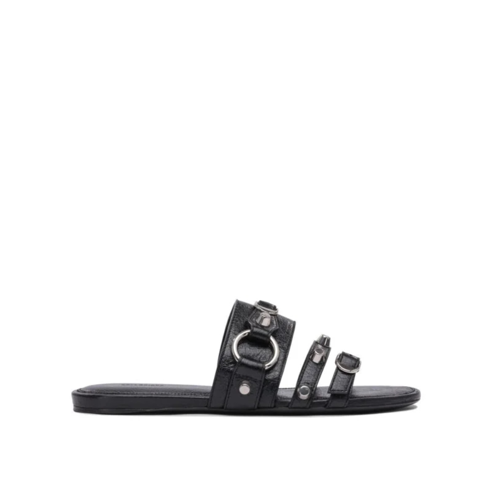 Les sandales femme Balenciaga City Slides incarnent un style audacieux et contemporain. Confectionnées en cuir d’agneau Arena, elles se distinguent par leurs détails métalliques signature avec clous et brides décoratives qui soulignent l’empeigne. Leur silhouette épurée à bout rond assure confort et modernité pour la saison printemps été 2025. Le logo embossé à l’intérieur complète ce modèle emblématique au caractère urbain et sophistiqué.
