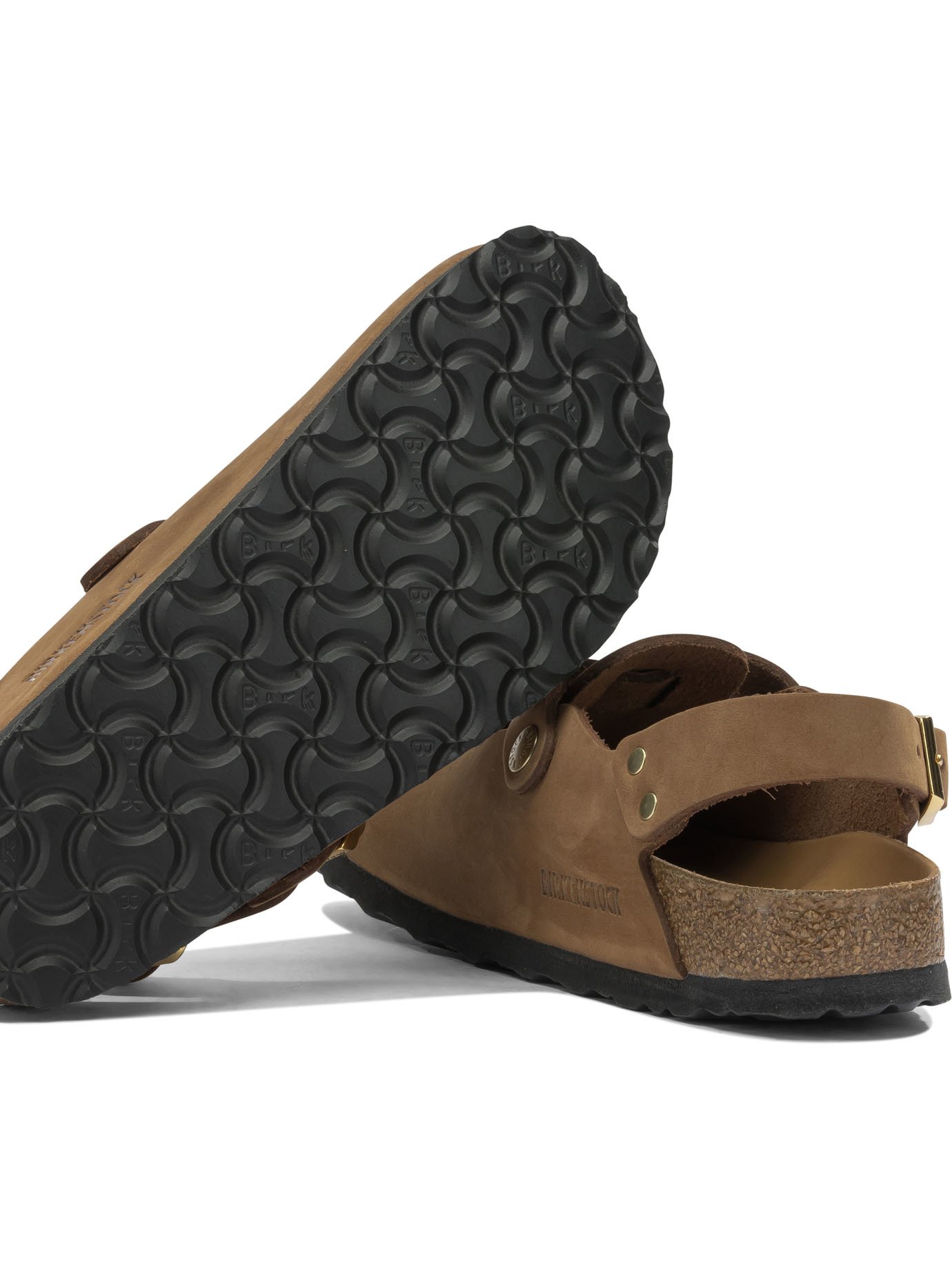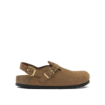 Les sandales Birkenstock « Tokio Hex » pour femme revisitent le sabot classique avec une approche moderne et fonctionnelle. Confectionnées en daim pleine fleur avec finition légèrement duveteuse, elles présentent une structure fermée à l’avant inspirée du sabot. Les deux brides réglables au niveau du cou-de-pied et du talon permettent un ajustement précis et confortable. La semelle anatomique en liège et latex, recouverte de cuir nappa lisse, épouse naturellement la forme du pied, tandis que la semelle extérieure en EVA garantit légèreté et souplesse au quotidien.