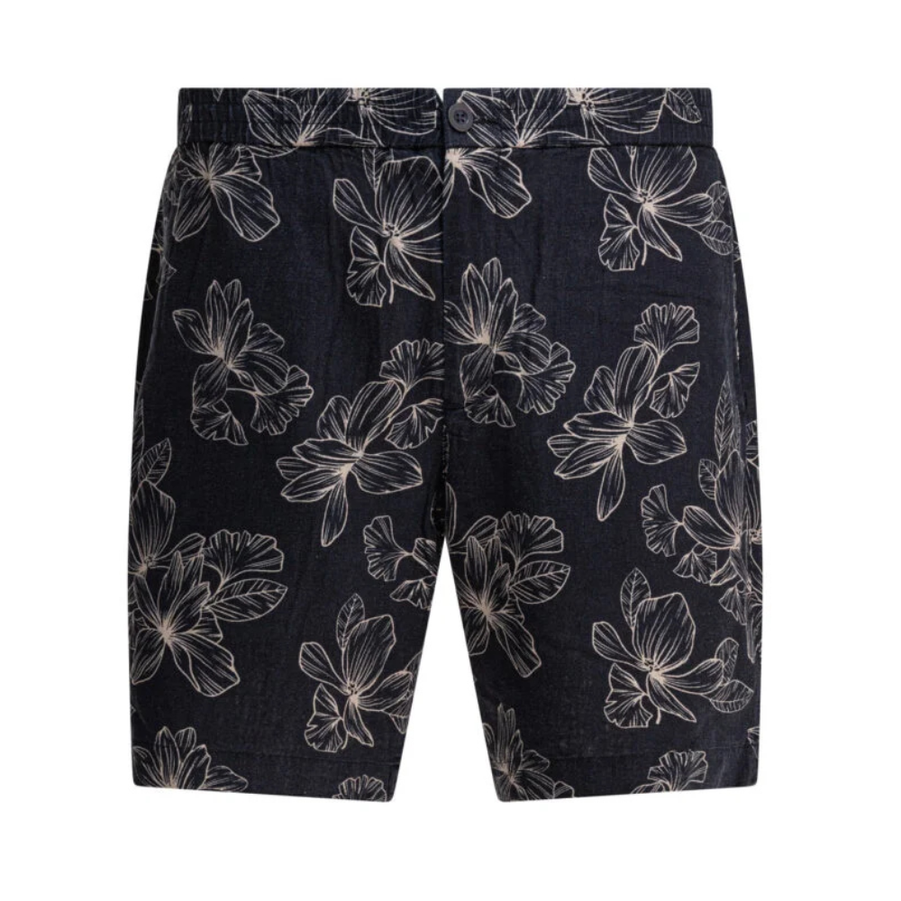 « Vince » short homme bleu à motif floral en lin et viscose coupe regular