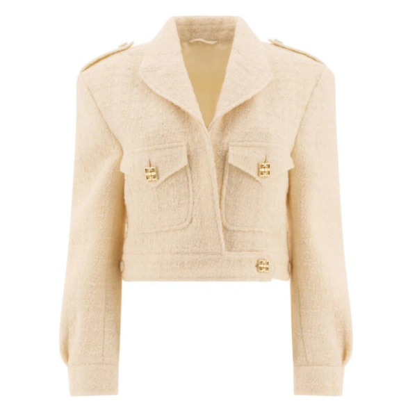 « Givenchy » veste courte femme blanche en tweed de laine avec détail 4G