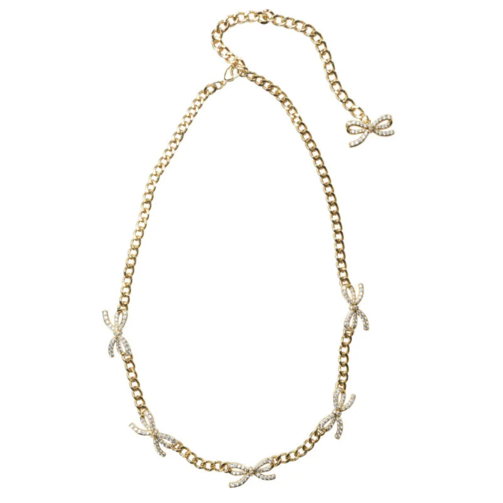 Ce collier ras-de-cou signé Self-Portrait allie éclat et sophistication. Construit sur une base rigide en laiton plaqué or, il se distingue par une succession de nœuds raffinés, chacun orné de cristaux appliqués avec précision. Sa silhouette élégante mesure 41 cm hors chaîne réglable, avec une hauteur maximale de 2 cm, offrant un équilibre entre finesse et brillance. Fermé par une boucle discrète, il constitue l’accessoire idéal pour rehausser une tenue de soirée ou apporter une touche lumineuse à un look habillé.