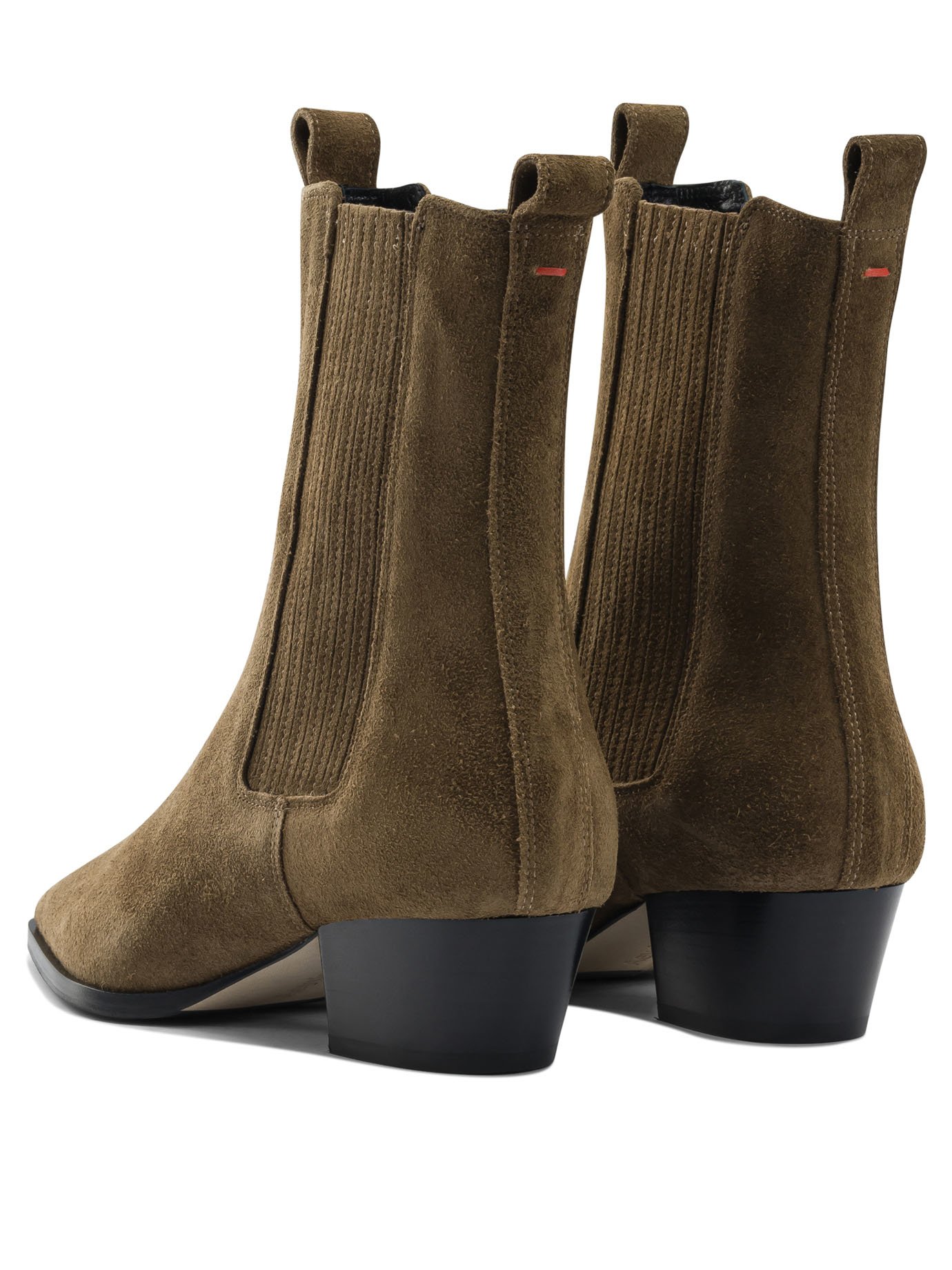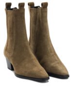 Ces bottines Aeyde Agata pour femme associent l’esthétique des Chelsea boots et l’inspiration western dans une silhouette moderne et élégante. Confectionnées en daim de haute qualité, elles présentent un bout carré distinctif et un talon incliné qui souligne leur caractère contemporain. Les tirants placés à l’avant et à l’arrière facilitent l’enfilage, tandis que l’empiècement élastique latéral assure un ajustement confortable. La semelle en cuir complétée par une base en caoutchouc apporte durabilité et adhérence au quotidien.