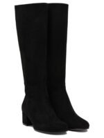 Les bottes Gianvito Rossi « Joelle 45 mm » pour femme incarnent l’élégance intemporelle et le savoir-faire artisanal italien. Confectionnées entièrement en daim, elles présentent une silhouette épurée avec un bout arrondi qui assure confort et modernité. La fermeture zippée latérale permet un enfilage pratique, tandis que le talon bloc de 45 mm offre stabilité et équilibre au quotidien. La doublure en cuir et la finition soignée témoignent de l’attention portée aux détails, faisant de ce modèle une pièce raffinée pour la saison automne-hiver.