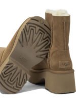 Ces bottines UGG Classic Esmee pour femme revisitent l’iconique silhouette hivernale dans une version contemporaine et responsable. Confectionnées en peau de mouton retournée de 10 mm, elles offrent chaleur et douceur incomparables. La doublure et la semelle intérieure en UGGplush™ associent laine recyclée et lyocell TENCEL™ pour un confort optimal. Dotées d’une semelle plateforme en EVA issu de canne à sucre, elles allient style affirmé et engagement durable pour la saison automne hiver 2025.