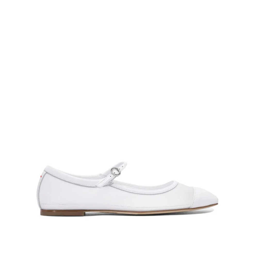 « Aeyde » ballerines Mary Jane femme blanches en tissu et cuir modèle Uma Eyelet