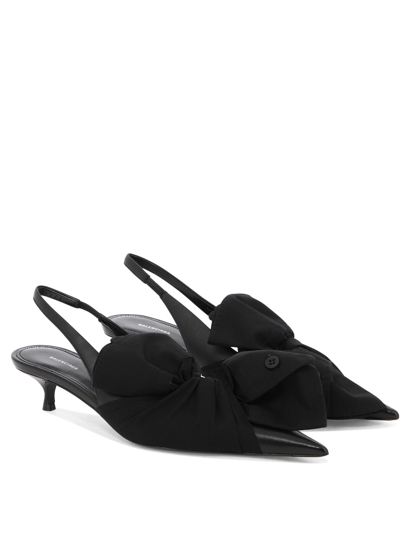 Les escarpins Knife Chemise 40 mm Balenciaga pour femme incarnent une élégance contemporaine audacieuse, mêlant innovation stylistique et savoir-faire artisanal. Confectionnés en cuir d’agneau souple et en popeline de coton, ils se distinguent par leur empeigne ornée de manches de chemise nouées, signature créative forte de la maison. Leur bout allongé emblématique et leur talon Knife bas apportent une silhouette élancée tout en garantissant un confort maîtrisé. Pensés pour la saison automne-hiver, ces escarpins offrent une allure sophistiquée et singulière, idéale pour des occasions élégantes nécessitant une touche de modernité discrète.