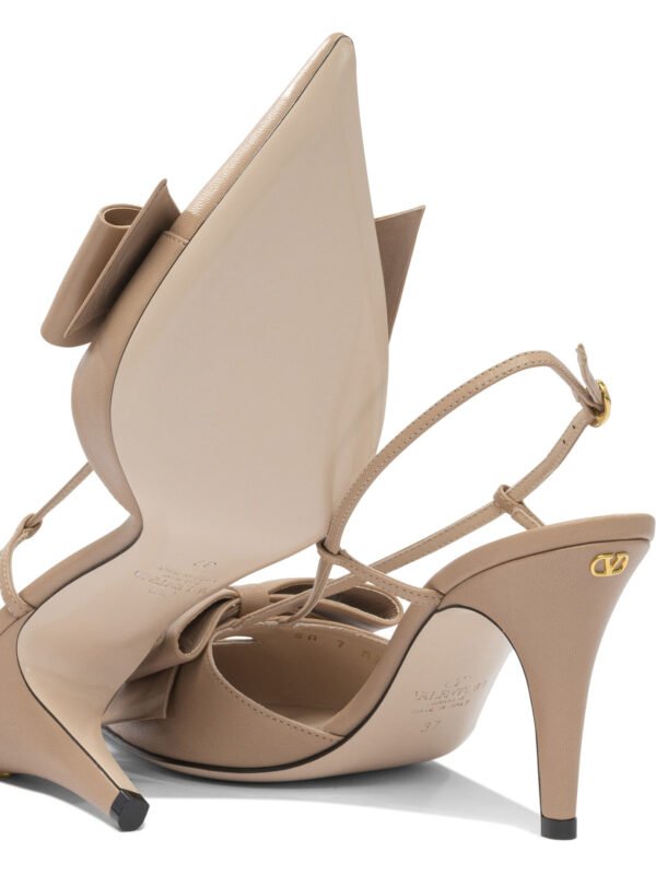 Les escarpins slingback femme Valentino Garavani Bowow incarnent une élégance raffinée et féminine. Réalisés en cuir de haute qualité, ils se distinguent par leur bride ajustable et leur nœud délicat qui souligne la silhouette du soulier. Le talon arbore le logo VLogo signature avec finition laiton vieilli, apportant une touche emblématique. Leur semelle intérieure personnalisée à motif floral ajoute une note subtile et sophistiquée. Idéals pour compléter un look habillé, ces escarpins offrent un équilibre parfait entre modernité et intemporalité.