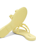 cette claquette de la maison aquazzura pour femme est une pièce de maroquinerie au design audacieux et contemporain conçue pour la saison printemps-été 2026. fabriquée en italie, elle est intégralement confectionnée dans un pvc léger de première qualité (100 %), offrant une structure souple, une main lisse et une esthétique translucide propre aux standards de la haute manufacture de luxe florentine. sa silhouette « infinity chain » se distingue par son motif de chaîne sculpté appliqué sur la bride, alliant l’esthétique glamour de la griffe à une sophistication urbaine idéale pour vos tenues de prestige estivales. le design au coloris jaune vibrant présente une construction soignée avec un effet géométrique en trois dimensions, signature du prestige et de l’identité visuelle d’edgardo osorio. la structure inclut une semelle plate et une première de propreté rembourrée en cuir, garantissant une silhouette épurée, une grande liberté de mouvement et un confort de porter exemplaire. ce modèle allie parfaitement la noblesse de matériaux innovants sélectionnés à une ingénierie de chaussant ergonomique, constituant une pièce de collection indispensable pour votre vestiaire.