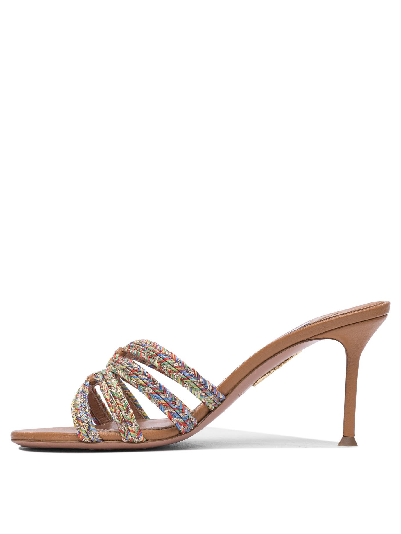 « Aquazzura » sandales femme multicolores en cuir et tissu à talons moyens
