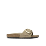 Les sandales « Madrid Big Buckle » de Birkenstock incarnent le confort emblématique de la marque allié à une esthétique naturelle et épurée. Confectionnées en cuir nubuck huilé marron, elles se distinguent par leur finition à coutures ouvertes et leur large bride ornée d’une boucle métallique ajustable. Leur semelle anatomique en liège et latex, doublée de cuir lisse, assure un maintien optimal et un confort durable. La semelle extérieure en EVA complète ce design intemporel, parfait pour la saison automne-hiver 2025 comme pour les moments de détente.