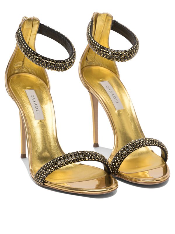 Ces chaussures à talons Casadei incarnent l’élégance et le glamour italien. Réalisées en cuir de haute qualité, elles allient raffinement, confort et durabilité. Leur teinte dorée lumineuse apporte une touche sophistiquée et audacieuse, idéale pour sublimer une tenue habillée. Leur talon haut souligne la silhouette avec féminité, parfait pour la saison printemps-été 2025. Fabriquées en Italie, elles reflètent l’excellence artisanale propre à la maison Casadei.