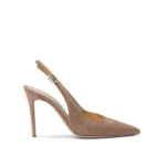 Les sandales à talon Gianvito Rossi Yves slingback se distinguent par leur silhouette effilée et leur allure raffinée. Confectionnées en cuir avec détails en daim, elles présentent une ligne pointue et un design minimaliste sublimé par une bride arrière réglable. La boucle latérale ornée du logo apporte une touche de sophistication, tandis que le talon haut de 100 mm allonge élégamment la silhouette. Un modèle d’exception, pensé pour les occasions spéciales et les tenues habillées.