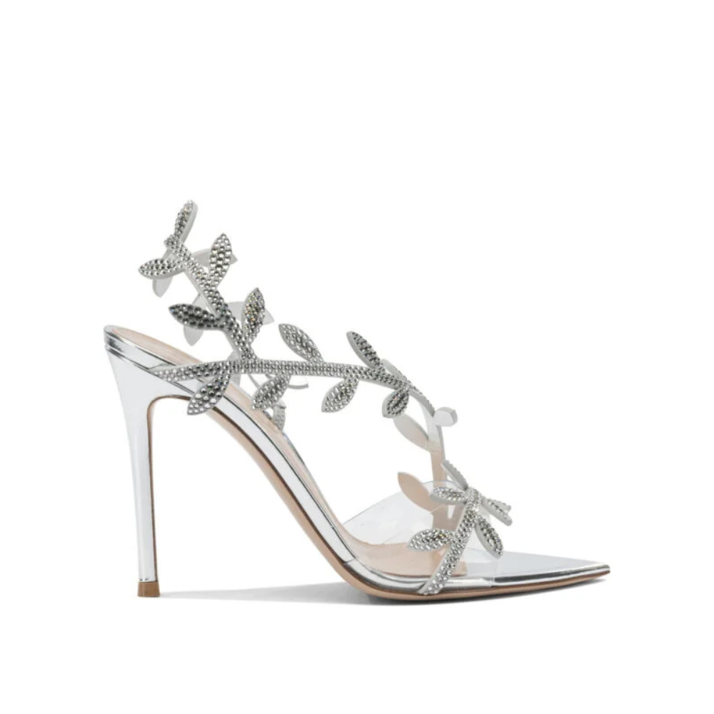 Les sandales « Crystal Flavia 105 mm » de Gianvito Rossi incarnent un glamour sophistiqué grâce à une construction raffinée et des détails précieux. Réalisées en suède argenté avec insert Plexi transparent, elles dévoilent une silhouette asymétrique élégante sublimée par des appliqués de cristaux scintillants. Le motif floral découpé au laser sur la bande avant apporte une dimension couture, tandis que le talon aiguille accentue la ligne élancée du modèle. Fabriquées artisanalement en Italie, ces sandales femme Gianvito Rossi sont idéales pour sublimer les tenues de soirée avec éclat.