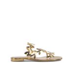 Les sandales « Flavia » Gianvito Rossi pour femme sont confectionnées en cuir à effet miroir, apportant une touche lumineuse et sophistiquée à la silhouette. Leur structure plate à bout rond et talon bas assure confort et élégance pour la saison printemps/été 2026. Le design asymétrique est sublimé par un motif floral découpé au laser sur l’empeigne, révélant un travail de précision artisanal. Entièrement assemblées à la main en Italie, elles reflètent l’excellence et le raffinement propres à la maison.