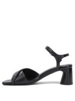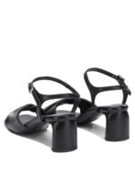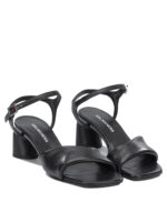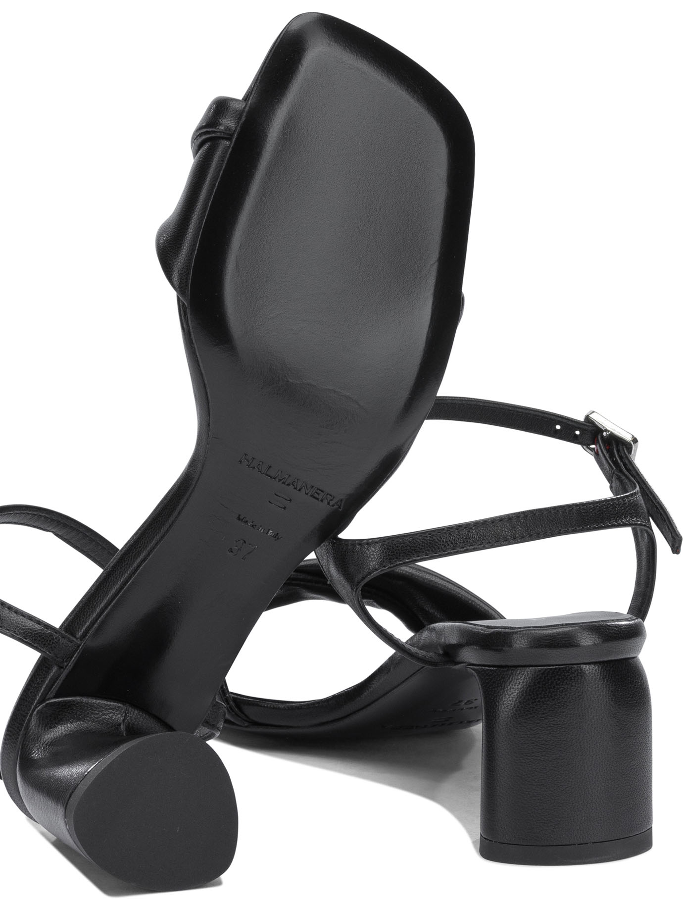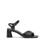 « Halmanera » sandales femme noir en cuir nappa poli à talon mi-haut