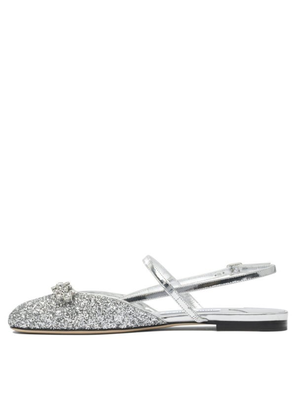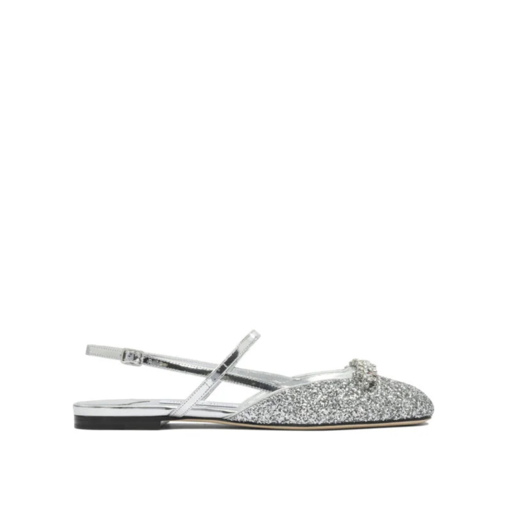 « Jimmy Choo » ballerines slingback femme argent cuir verni cristaux