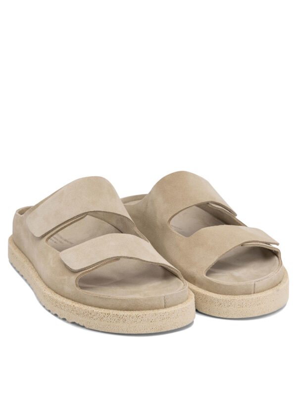 Ces sandales beige « Sands 105 » signées Officine Creative se distinguent par leur élégance sobre et leur qualité artisanale italienne. Confectionnées en daim doux, elles reposent sur une semelle en caoutchouc pour un confort optimal. Parfaites pour compléter une tenue estivale raffinée, elles allient style intemporel et savoir-faire d’exception.