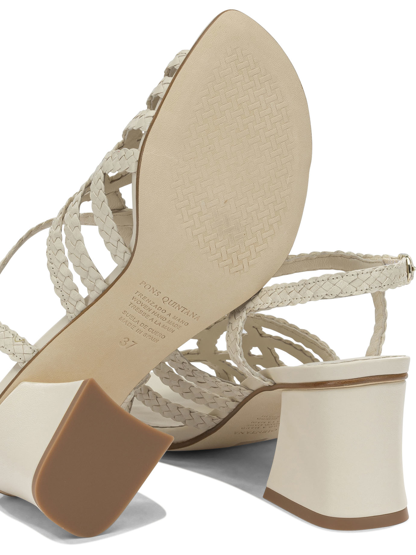 « Pons quintana » sandale femme blanc en cuir tressé à talon moyen