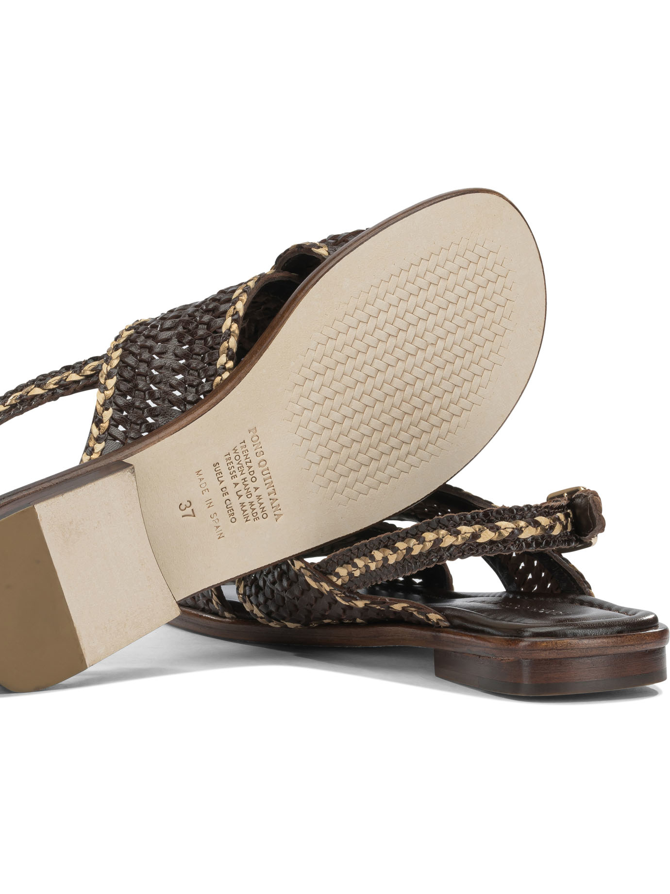 « Pons quintana » sandale femme marron en cuir tressé à talon bas