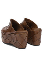 « Pons quintana » sandale femme marron en cuir tressé à talon haut