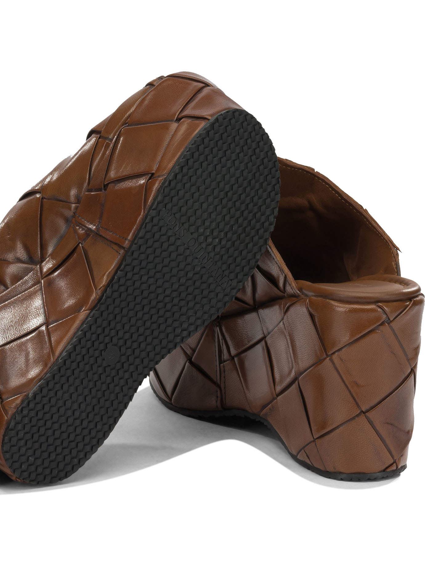caractéristique spéciale : structure en cuir tressé à la main (hand-woven leather), signature artisanale de la maison pons quintana