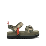 cette sandale basse de la maison ugg pour femme est une pièce de maroquinerie au design utilitaire et écoresponsable conçue pour la saison printemps-été 2026. fabriquée au vietnam, elle est confectionnée dans un mélange de cuir suédé de première qualité (100 %) et de textile cordura ecomade en polyester recyclé, offrant une structure robuste, une excellente résistance à l’abrasion et une main texturée propre aux standards de la haute manufacture « outdoor » contemporaine. sa silhouette « goldenstar wildwood » se distingue par son système de brides ajustables et son assise plantaire ergonomique, alliant l’esthétique décontractée de la griffe à une sophistication durable idéale pour vos tenues de prestige. le design au coloris vert présente une construction soignée avec une semelle en canne à sucre eva, signature du prestige et de l’engagement environnemental d’ugg via l’initiative rise. la structure inclut des fermetures par velcro, une boucle métallique et un traitement anti-odeur à la menthe poivrée, garantissant une stabilité de marche optimale, une grande légèreté de mouvement et un confort de porter exemplaire. ce modèle allie parfaitement la noblesse d’une peau sélectionnée à une ingénierie de matériaux biosourcés, constituant un soulier de collection indispensable pour votre vestiaire.