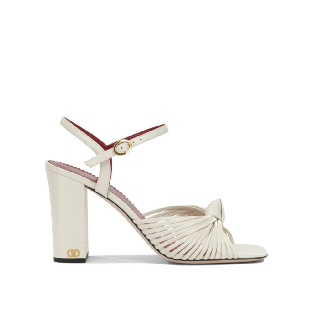 cette sandale de la maison valentino garavani pour femme est une pièce de chaussure au design minimaliste et sculptural conçue pour la saison printemps-été 2026. fabriquée en italie, elle est intégralement confectionnée dans un cuir de chevreau de première qualité (100 %) avec des finitions en cuir de veau (100 %), offrant une structure d’une finesse exceptionnelle, une souplesse remarquable et un confort de portage propre aux standards de la haute manufacture italienne. sa silhouette se distingue par une ligne épurée « annet » et un talon large de 90 mm entièrement recouvert de cuir, alliant l’esthétique sophistiquée de la griffe à une stabilité idéale pour vos tenues de prestige. le design au coloris blanc optique présente une construction soignée avec un détail de nœud décoratif réalisé en mignons de cuir sur le dessus, signature du prestige et de l’attention portée aux textures artisanales par la marque. la structure inclut une bride de cheville ajustable pour un maintien parfait et l’emblématique logo vlogo en laiton finition antique appliqué sur le cadre arrière du talon, garantissant une reconnaissance visuelle immédiate et une élégance intemporelle. ce modèle allie parfaitement la noblesse des peaux sélectionnées à une ingénierie de chaussant de luxe, constituant un accessoire d’exception pour votre vestiaire.