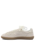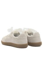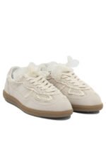 Ces sneakers Alohas pour femme présentent une silhouette basse au design contemporain et raffiné. Confectionnées en cuir suédé, elles se distinguent par leurs finitions en crochet appliquées sur l’empeigne qui apportent une touche artisanale et originale. La semelle plate en caoutchouc, fixée par des coutures apparentes, souligne la structure du modèle et assure confort et adhérence. Le logo embossé sur la languette et les côtés signe discrètement la paire, tandis que la fermeture permet un choix entre lacets classiques ou nœud décoratif.