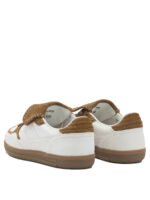 Ces sneakers Alohas pour femme présentent une silhouette basse au design contemporain inspiré de l’esthétique sportive. Confectionnées en cuir avec des détails en cuir suédé sur la languette et l’empeigne, elles offrent un contraste de textures élégant. La longue languette repliée sur l’avant rappelle les codes techniques des chaussures de sport, tandis que les coutures apparentes soulignent la construction du modèle. La semelle plate en caoutchouc assure confort et adhérence pour un usage quotidien.