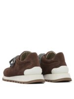 Les baskets « Runners » de Brunello Cucinelli incarnent l’élégance sportive et le savoir-faire artisanal italien. Réalisées en daim au fini velouté, elles se distinguent par leur silhouette arrondie et leurs détails raffinés en monile brillant sur la languette. Dotées d’une doublure en coton mélangé pour un confort durable et d’une semelle en caoutchouc léger assurant stabilité et résistance, elles sont idéales pour un style chic et décontracté. Un modèle sophistiqué qui reflète parfaitement l’esprit intemporel de la maison Brunello Cucinelli.