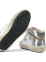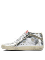 cette sneaker mi-haute de la maison golden goose pour femme est une pièce de chaussure au design hybride et artisanal conçue pour la saison printemps-été 2026. fabriquée en italie, elle est intégralement confectionnée dans un cuir de première qualité (100 %) avec une finition laminée, offrant une structure robuste, un éclat métallique et une texture sophistiquée propre aux standards de la haute manufacture vénitienne. sa silhouette « mid star » se distingue par une ligne inspirée des codes du skateboard classique et du brogue anglais, alliant l’esthétique « distressed » de la griffe à une allure moderne idéale pour vos tenues de prestige. le design au coloris argent (silver) présente une construction soignée avec des empiècements en suède sur l’étoile, le talon et la virgule, ainsi que des perforations de style anglais sur les inserts latéraux, signature du prestige et de l’identité visuelle de golden goose. la structure inclut des lacets contrastés avec logo imprimé, un traitement vintage appliqué à la main sur les matériaux et une semelle en caoutchouc (100 %), garantissant une excellente absorption des chocs, une adhérence parfaite et un confort de marche exemplaire. ce modèle allie parfaitement la noblesse des peausseries italiennes à une ingénierie de design créative, constituant un soulier de luxe pour votre vestiaire.
