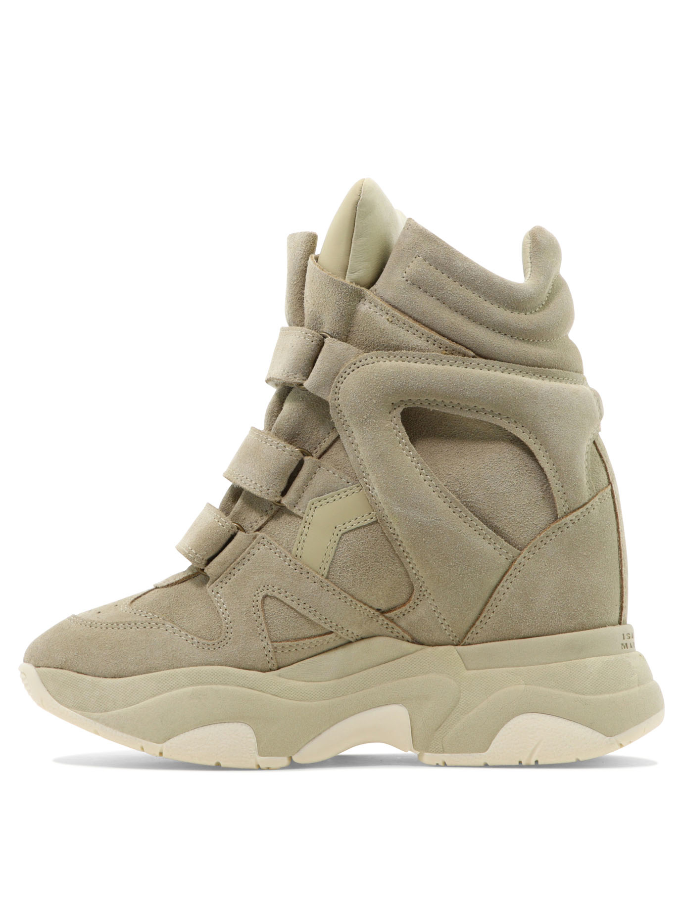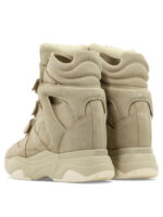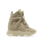 cette sneaker montante de la maison isabel marant pour femme est une pièce de chaussure au design sculptural et emblématique conçue pour la saison printemps-été 2026. fabriquée au portugal, elle est intégralement confectionnée dans un cuir de veau velours de première qualité (100 %), offrant une structure souple, un toucher soyeux et une excellente durabilité propre aux standards de la haute manufacture parisienne. sa silhouette « balskee » se distingue par sa ligne haute et ses empiècements latéraux contrastés, alliant l’esthétique sportswear des années 80 de la griffe à une allure moderne idéale pour vos tenues de prestige. le design au coloris beige sable présente une construction soignée avec trois brides velcro ajustables sur le dessus, signature du prestige et de l’identité visuelle d’isabel marant. la structure inclut une languette rembourrée ornée d’une étiquette logo « marant », une doublure et une première de propreté en cuir, ainsi qu’une semelle extérieure en caoutchouc (100 %) profilée, garantissant un confort d’accueil exceptionnel, un maintien optimal du pied et une marche exemplaire. ce modèle allie parfaitement la noblesse d’une peau retournée sélectionnée à une ingénierie de design audacieuse, constituant un soulier de luxe indispensable pour votre vestiaire.